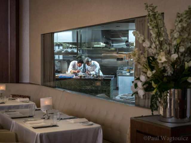至福の経験をトータルに演出する『Gabriel Kreuther』には、シェフたちが忙しく働くキッチンのそばで食べられるシェフズテーブルのコーナーもある。8人まで着席できるそのテーブルでは、一般のプリフィックスとは違うコース料理が用意されている。シェフズテーブルはキッチンと共にメインダイニングルームからガラス越しに見えて、「見られながら食べること」でさらに気分が上がる場となりそうだ。