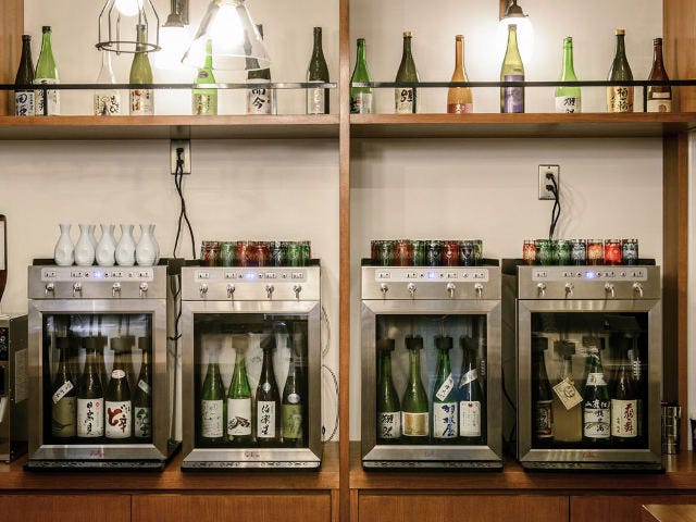 こうした料理に合わせたいのが日本酒だろう。同店では、まずお気に入りのお猪口をチョイスし、アイランドテーブル横の日本酒サーバー(写真・上)から自分の好みの日本酒を選んで注ぐことができるのも魅力の一つだ。全16種類の中からどれを飲もうか迷った時は、牡蠣のために作られた純米吟醸酒「YAMAWA for Oyster」を試してみては? 「宮城の牡蠣に合う酒を」というコンセプトから、宮城の米と水と酵母で造られている。こちらの日本酒は香り穏やかでうまみと酸味のバランスがよく、牡蠣のうまみを引き立ててくれる。