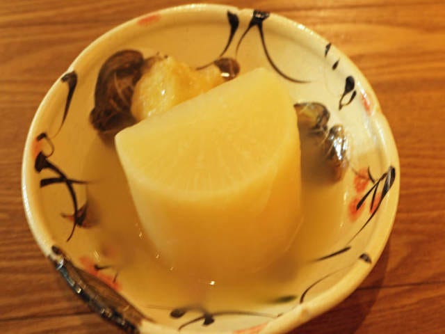 選び抜かれた鶏ガラと野菜を長時間煮込んだ鶏だしは、生姜が効いていて鶏のうまみと甘みが豊か。しっかりと鶏だしがしみ込んだおでんの具は、全部で28種を用意する。