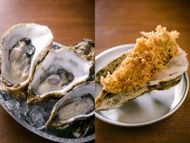 普段は高級だからと遠慮してしまうノドグロでも煮付けが1,380円(写真・上)と非常にリーズナブル。また宮城県・三陸の4つの漁場から産地直送で仕入れた生牡蠣が食べ比べできるお得なセット「宮城牡蠣比べ3種」880円(写真・下左)もおすすめだ。食べ比べできるのは「万石浦かき」「鳴瀬」「長面浦かき」の3種。なかでも万石浦かきは、ホタテの裏に卵を植え付けて種カキが育てられているほど条件が良い海で育てられ、身がふっくらしていてミルキーな甘みが特徴となっている。