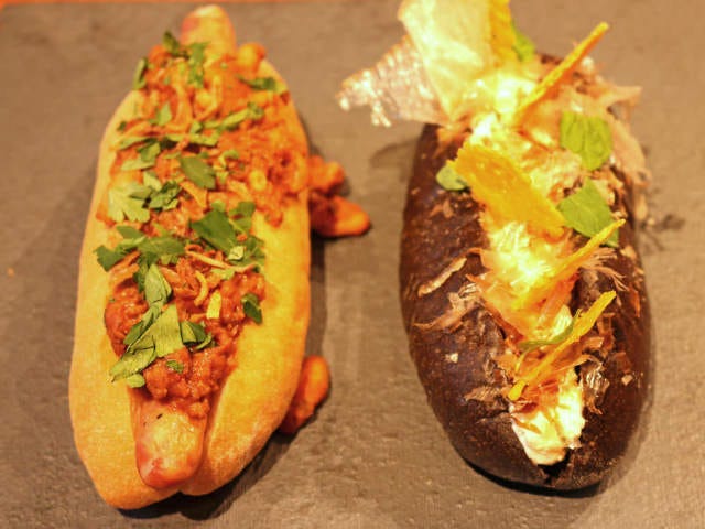 ランチタイムには、テイクアウトスタンドで「白と黒のコッペパン」(写真・下)を食べながら、目黒川沿いを散歩するのもいいだろう。