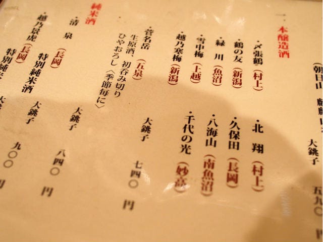 2泊3日で鮨屋、料亭…といろんな新潟市の酒場に行ったのだが、菊正宗とか白雪、月桂冠とかそういうメジャー酒はない。