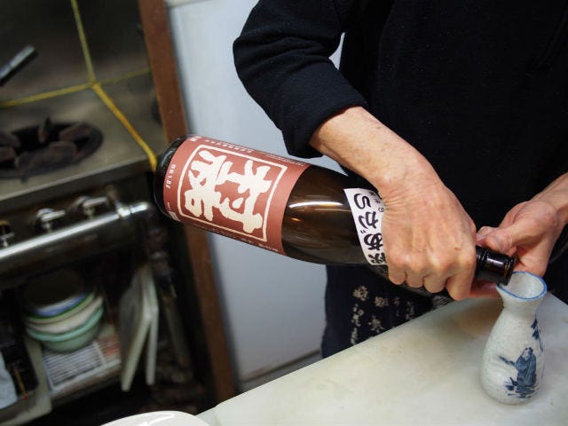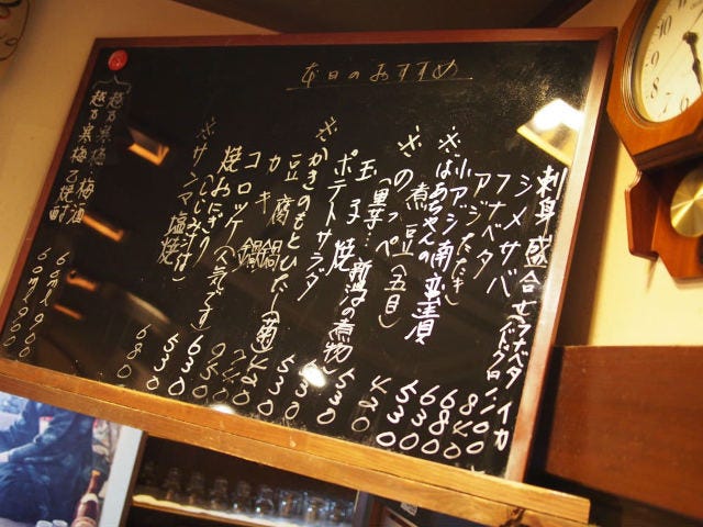 普通に飲む本醸造だけでも〆張鶴から越乃寒梅まで10数種。大銚子(1.6合)ですべて740円。「今日のお得なオススメ」で村祐がリストに上がっている。