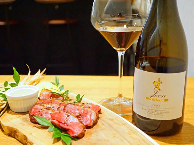 チョイスしたのはポルトガルの「ジャエン2011(キンタ・ドス・ロケス)」。メンシア種(スペイン語でジャエンと呼ぶ)100%のワインは、タンニンが強すぎず酸がきれいで、エレガントな貴婦人のよう。「ピノノワール風ですが、力強くて野生的。ほのかに感じるスパイス味が薫香によく合います。「銀の鴨」は、一般的な鴨より力強い野性味を感じるため、ジャエンの特徴にぴったりです。ポルトガル産のワインは、あまり飲む機会が少ないかもしれませんが、今まで経験したことのないペアリングを提案することで、驚きを体験していただきたい」と田辺さんは説明してくれる。