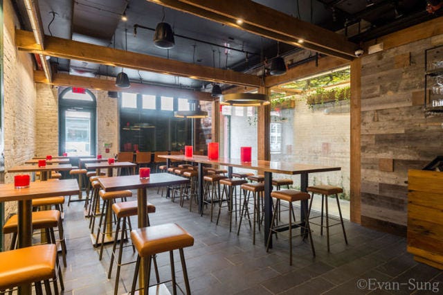 最初の店はアッパーイーストサイドの『バーニーズ』のすぐそばにあり、華やかな高級レストランだった。しかし、『ルージュトマトチェルシー』はもっとカジュアルで気楽に入れる。19世紀に馬小屋として建てられたランドマーク指定のビルを活用し、中は木やレンガのぬくもりを基調としたナチュラルで温かみのある空間になっている。