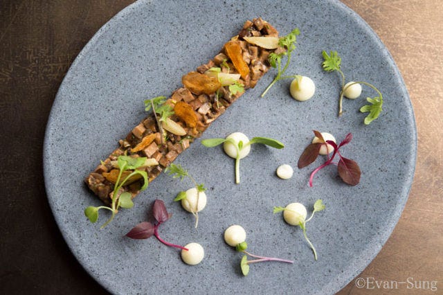 一番人気の高い料理はマッシュルーム。独創的な盛り付けも魅力的だ。食材はできるだけ地元でつくられたオーガニックのものを使う「地産地消」志向。どうしても地元で育てられない食材は、環境や社会的責任において信頼できる生産者から買い付けている。