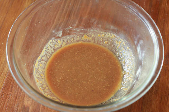 ⑤ 肉汁と味噌を混ぜてソースを作る。