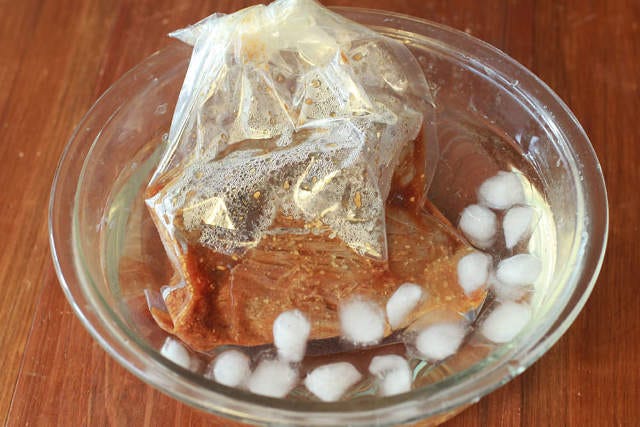 (※厚みが5cm以下の肉を使う際は、火の通りすぎを防ぐため保温時間を20分にする。)