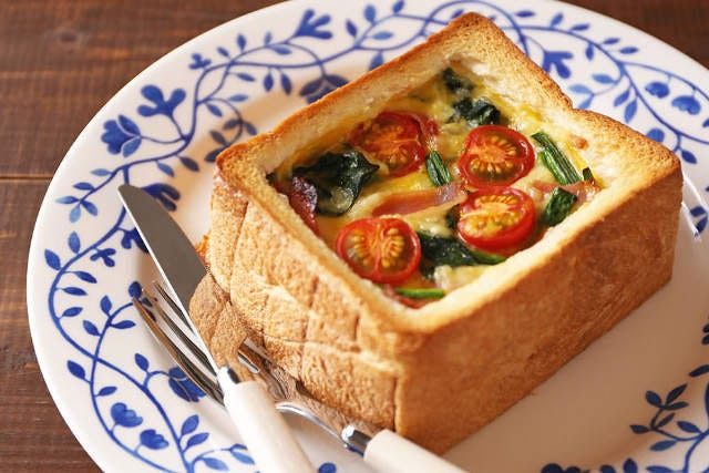2.くり抜くだけで器が完成! 食卓を鮮やかに彩る「食パンキッシュ」