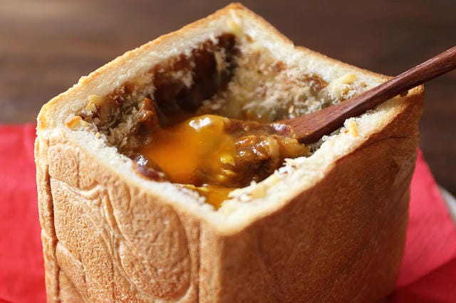 3.とろ~り半熟卵入り! 食パンを1斤使った「まるごとカレー食パン」