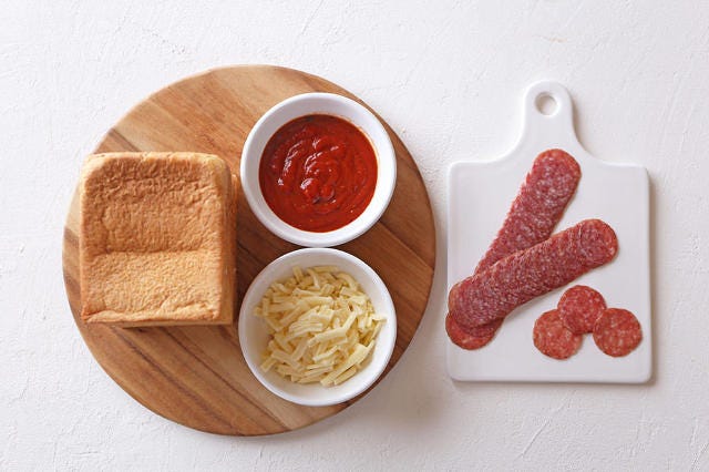 1.みんなで分けても楽しい! チーズとろ~り「食パンプルアパートピザ」