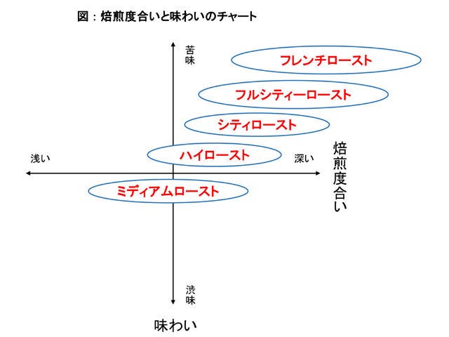 次に非常に重要なポイントが「焙煎度合い」。なぜかというと、例えば同じ「ブラジル」の豆でも、「浅煎り」と「深煎り」では全く味わいが変わってしまうから。つまり、「やっぱりマンデリンだね」とか「わたしはグァテマラが好き」などと豆を産地で選ぶよりも、まず自分はどのくらいの焙煎度合いの豆が好みなのかを知ることが重要なのだ。一度自分の好きな焙煎度合いを把握すれば、たとえ豆の産地が違っても、好みの味わいからそう大きく外れることはない。
