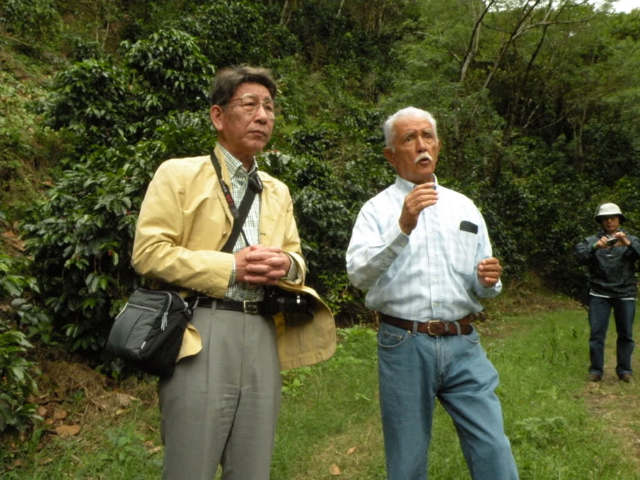 最後に、『バッハ』について紹介しよう。1968年に田口護さんと文子さん夫妻がオープンした同店は、前述した通り、1972年から自家焙煎をスタートしコーヒー界を牽引してきた専門店だ。田口さんは、40カ国以上のコーヒー生産国を回り、良質のコーヒー豆を通じて信頼関係を取り結んできた姿から、世界中のコーヒー関係者に「レジェンド」と称され大きな影響を与えている(写真はパナマのドンパチ農園主フランシスコ氏と田口さん)。