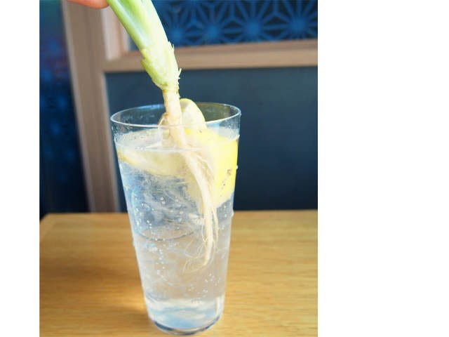 アルコールメニューにもハーブやスパイスが使われている。「レモン&パクチーの根サワー」(写真・上)は、国産レモンのサワーに、マドラーとしてパクチーの根が入っているユニークなドリンク。口に含むとほのかに香るパクチーの香りがさっぱりと心地よい。しかも、パクチーの根には、炎症の緩和やデトックス効果があり、かき混ぜれば混ぜるほど健康効果も期待できるというからうれしい。
