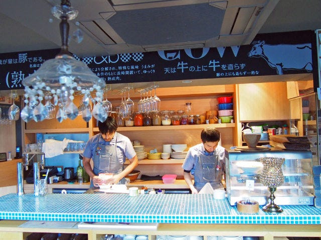 「うちでは、なるべく無農薬や有機の野菜を使うようにしています。これらの野菜は味が濃く、パワーがある。お肉の魅力をさらに引き立たせてくれるんです」と語るのは、スタッフの花道栄城さん。ほかにも「紀州二色味噌の有機野菜スティック」や、インド風野菜フリット「有機野菜のパコラ ミントチャツネ添え」など、無国籍でクリエイティブな野菜料理をラインナップしているので、肉を頼む前にぜひ注文してみてほしい。