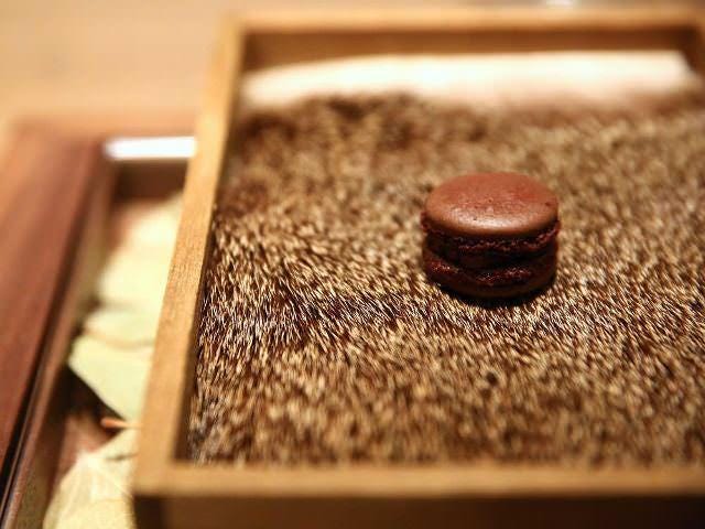 アミューズの「鹿のブラッドマカロン」から「野生のキノコと野生の雉(キジ)のコンソメ」まで、ジビエを堪能。