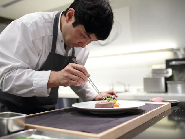 「料理と共に、この世界観に精神的にも浸って欲しい」と語るのは川島シェフ。彼のルーツは、『エル・ブジ』で知られる分子ガストロノミーの草分けのひとつ、スぺイン・バスク地方の二つ星レストラン『ムガリッツ』にある(ちなみに、『ムガリッツ』のオーナーシェフ、アンドニ・ルイス・アドゥリス氏は『エル・ブジ』出身)。