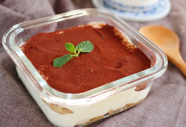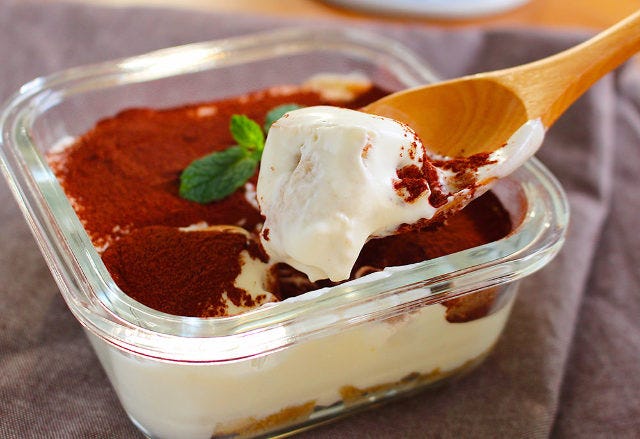 マスカルポーネがなくても、市販のクリームチーズを使うことで簡単にティラミスの味を再現できる。作り方も材料もとってもシンプル。ガラス容器に盛り付ければとってもお洒落な仕上がりに!