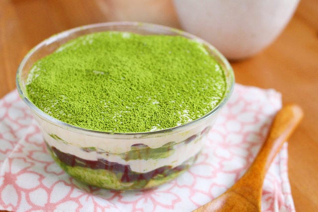 2.粒あん入りがうれしい!「抹茶とあんこの和風ティラミス」