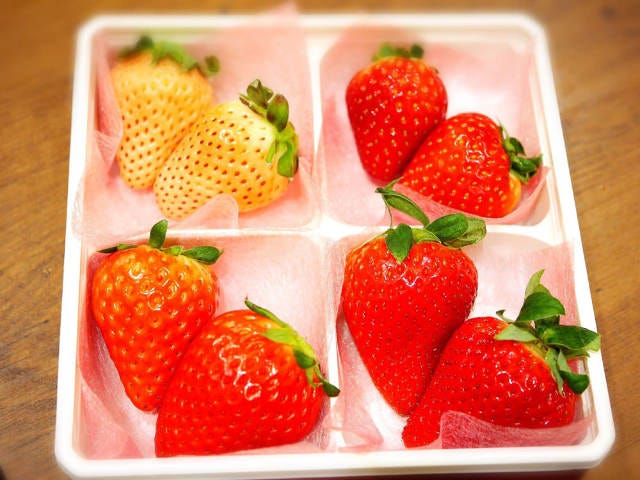 お土産のオススメ商品のひとつはやっぱり生いちご。毎年大人気の『横浜水信』の「4種食べ比べセット」は、白いちごを含めた厳選品種が2粒ずつ入っていて、友達や家族とワイワイ食べ比べを楽しむのにぴったり。