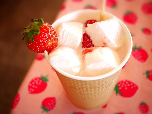 ドリンクのおすすめは『ストロベリーカフェ LECKER』の、ホットドリンク「冬苺のカクテルラテ マシュマロのせ」。