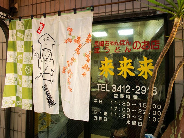 今回やってきたのは、東急田園都市線 三軒茶屋駅から徒歩3分、東京で本場の長崎ちゃんぽんが食べられるお店『來來來(らいらいらい)』です。店主の原田義行さんは、本場の長崎県のご出身。地元の名店『宝来軒』で修業されたのちに、1984年に『來來來』を創業されたそうです。30年以上の歴史を誇る店内は、なんともノスタルジック。落ち着くね!