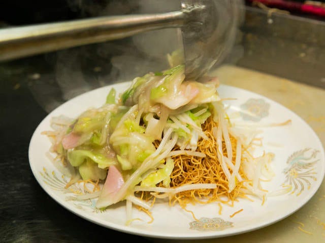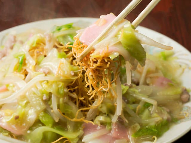 ふわっ&サクっと揚げられた麺と甘い餡かけの相性は抜群! 皿うどんの麺って、たまに口の中で刺さることがあるけれど、『來來來』の麺は、ふわっと揚げられているから、刺さることなく食べられます。