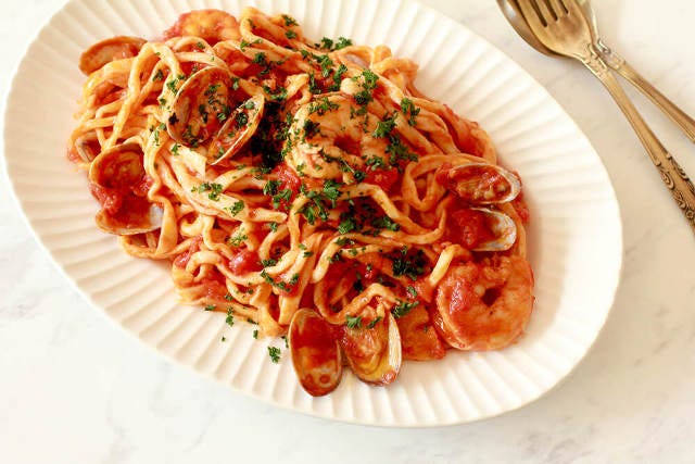 今回は自家製生パスタと相性抜群の魚介のトマトソースを紹介するが、クリーム系やオイル系など、お好みのソースを絡めてもおいしい!