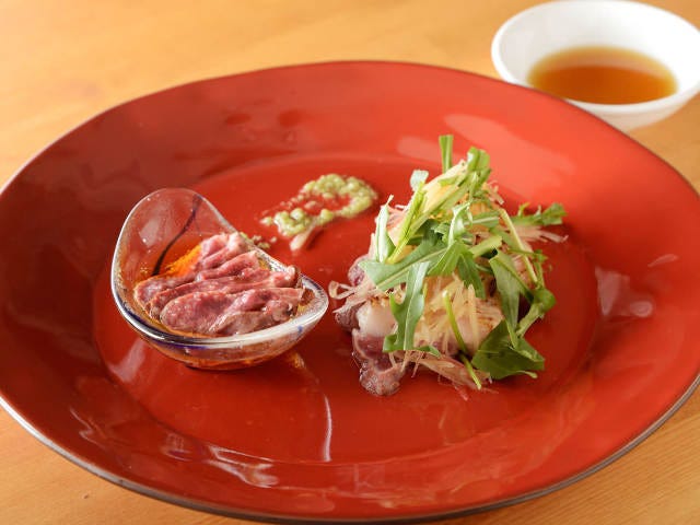 一方、鮮やかな色合いのタタキは、歯応えのある弾力が心地よく、噛みしめるたびにうまみがじわりと染み出てくる。周りの脂身は甘さをしっかりと感じるが、スーッと口の中で溶けていく。「この河内鴨の脂身は嫌な感じが全然ないと好評なんですよ」と語るのは、23歳の若きシェフ・吉良直起さんだ。