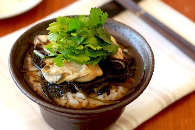 ② 鍋にAを入れて強火で熱し、牡蠣、焼き海苔を加えてフツフツする位の火加減で1分ほど煮たら火を止める。
