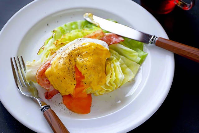 3.濃厚な卵がとろ~り! 「エッグベネディクト風焼きキャベツ」