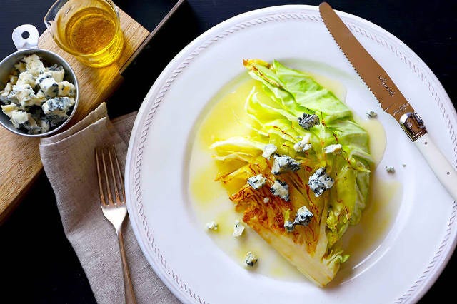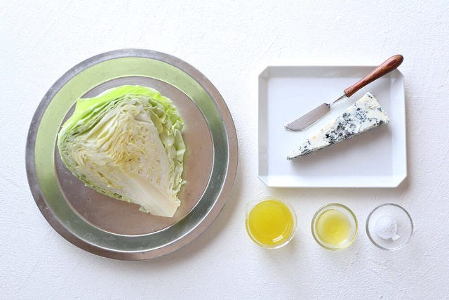 2.チーズの塩気と香りがあとを引くおいしさ! 「ゴルゴンゾーラオリーブオイル焼きキャベツ」