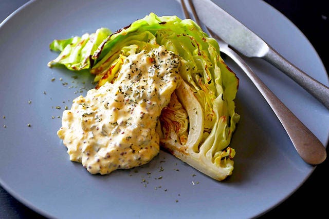 1.風味豊かでスパイシーな味わい! 「タルタルマスタード焼きキャベツ」