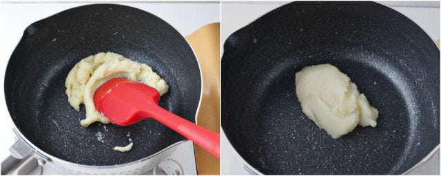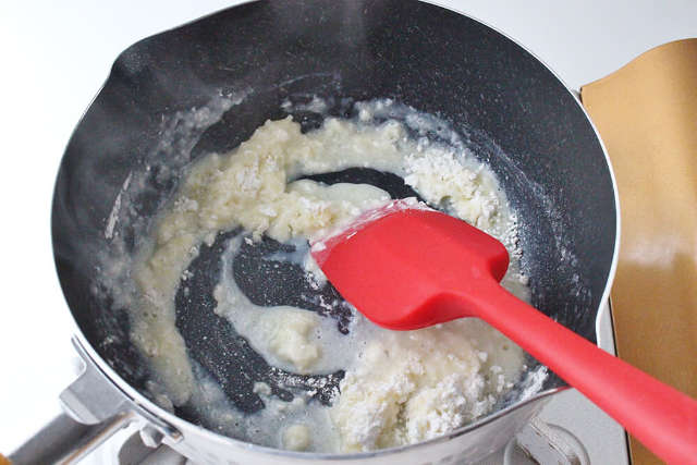 ④ 再び弱火にかけ、つややかにまとまるまで練る。