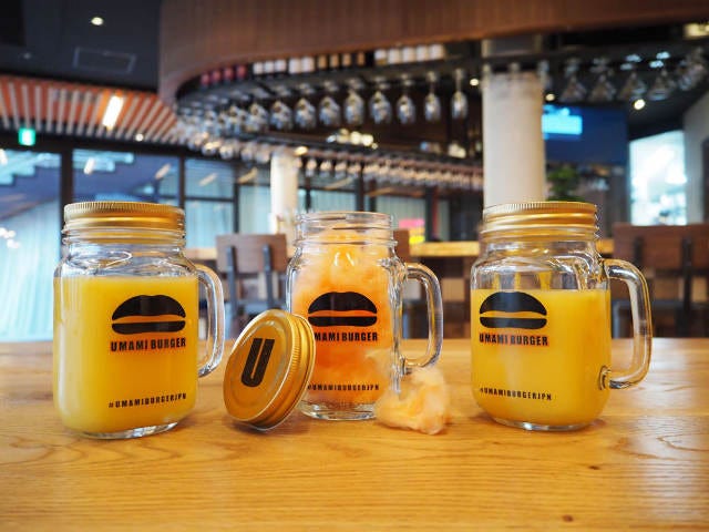 日本初上陸の青山店は、ウッドを基調とした温かみのあるインテリアをそろえた、落ち着きのあるお洒落な店舗。オープンを記念して、2017年3月24日(金)~26日(日)までの3日間限定で、各日100名を対象にオリジナルドリンクジャーのプレゼントを行う。ドリンクジャーの中には、ウマミバーガーのブランドカラーであるオレンジ色のコットンキャンディーが入っており、提供時にオリジナルドリンクを注いでくれるプレゼントがある。