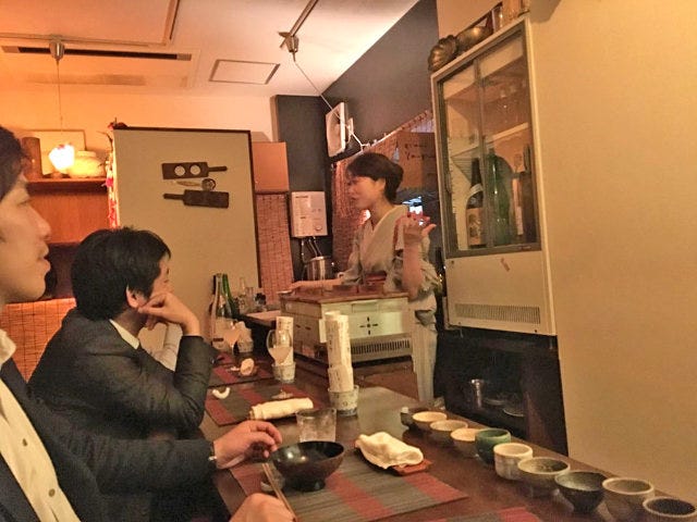 とりあえず、お客に温かいものを出したかった。着物がもともと大好きだったから、店では着物を着ようと決めていた。日本酒にも惹かれていたから、優しいだしのおでん屋を開こう。バラバラのパズルを組み合わせて行くように、『でんやふじさわ』がスタートする。