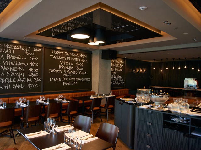 海外初進出となる、こちらの表参道ヒルズ店は、カウンターメインのワインバーとダイニングエリアの二部構成で、全142席からなるゆったりとした空間。ダイニングエリアは、シックでセクシーな黒を基調とした内装に、本店同様手書きでフードメニューが描かれたカジュアルな黒板が印象的だ。
