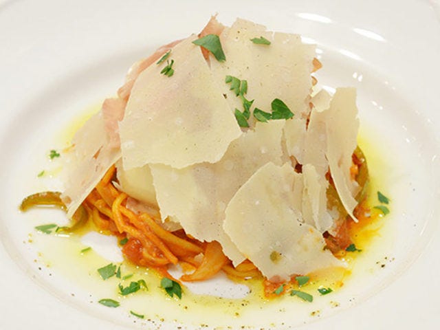 大阪府大阪市『KICHIRI(キチリ)』からは、熟成生ハムを贅沢にあしらった「イタリア直送! 18ヶ月熟成生ハムのチーズたっぷり贅沢ナポリタン」が登場。熟成生ハムの塩気がトマトソースを引き立て贅沢な味わいに。