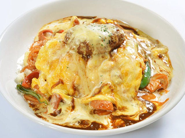 愛知県長久手市『洋食のことこと屋』からは「トロトロ玉子のナポリタン ハンバーグON」が登場。デミグラスソースのハンバーグにふわふわオムレツなど、洋食の中でも人気のメニューがナポリタンと合体した豪華な一品だ。