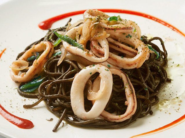 北海道函館にある『Caldo Calcio(カルドカルチョ)』の「函館イカナポリタンブラック」は、ナポリタンの常識を覆すような“真っ黒”な色彩がインパクト大。函館付近でとれたイカと野菜を使った地産地消のナポリタンで、モチモチの食感の生パスタと魚介のうまみがたまらない。