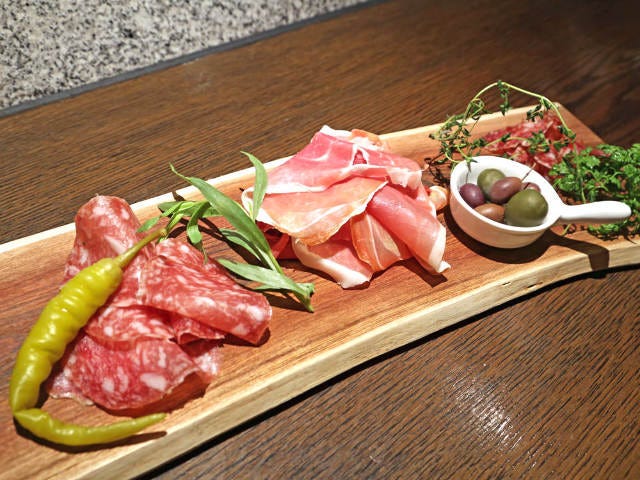 そんな日本酒に合うイタリアンの一つが「生ハム・サラミの盛り合わせ」(写真上)。木のプレートに盛り付けられた生ハムやサラミは、香りを損なわないために、注文後にカウンターに設置してあるスライサーでカットしてくれる。中でも、塩気のきいた濃厚な味わいのイタリア産生ハムは、お酒がどんどん進む定番のおつまみとして楽しめる。