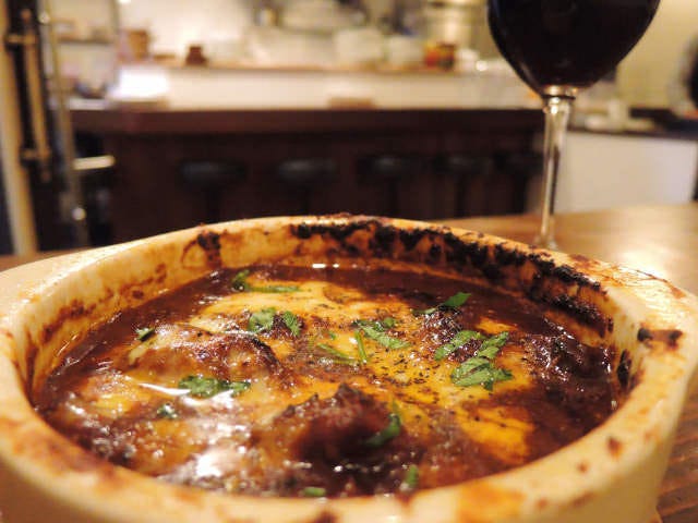 ディナータイムではカレー以外のスパイス料理も登場する。「牛ハチノスの八丁味噌マサラ煮込み」は、八丁味噌×マサラのユニークながらも抜群の相性にワインが進む。