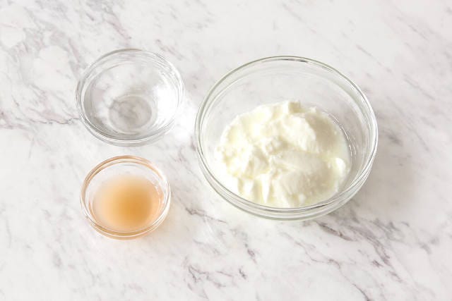 ① ミキサーにプレーンヨーグルト、水、ジンジャーシロップを入れてなめらかになるまで混ぜる。