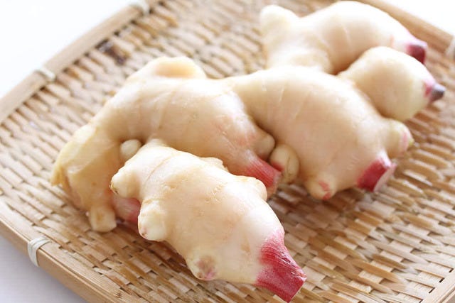 6月から8月にかけて旬を迎える「新生姜」。普通のショウガに比べて辛みがおだやかで、みずみずしさの中にほのかな甘みがあるのが特徴。体を温める効果もあり、免疫力を向上させる働きが期待できる。