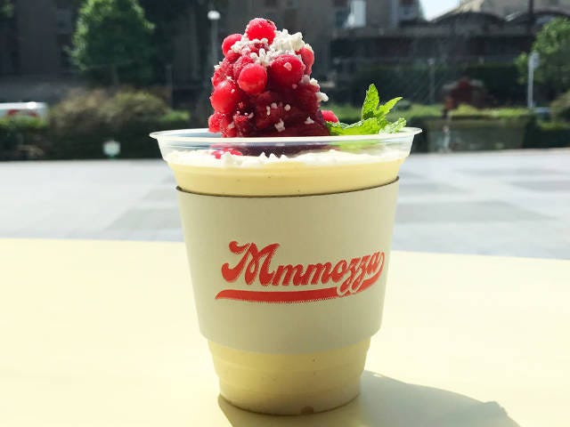 クリームチーズ、リコッタチーズ、マスカルポーネチーズの3種のチーズを使った濃厚なチーズシェイクで、トッピングには、ザクロとベリーのグラニテが乗っている。ひと口飲むと、アイスクリームとケーキの中間のような新感覚の舌ざわりで、なめらかなチーズケーキを味わっている感覚になる。