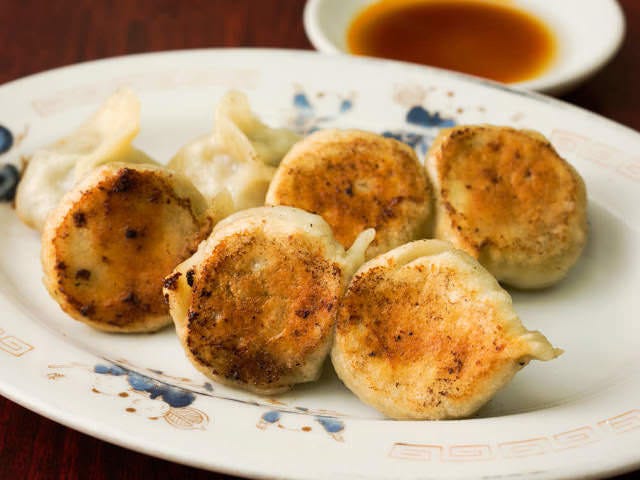ツルッとした皮は、やわらかい歯ざわりにカリッとした焼き目。餡はシンプルにキャベツとニラ、豚挽き肉でニンニクがやや多め。昔ながらの滋味深い味がたまらない。