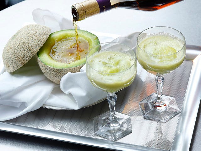 丸の内『パレスホテル東京』内にあるラウンジバー『プリヴェ』では、メロンを丸ごと1個使ったスイーツのようなカクテル「メロンとブランデーのラグジュアリーパンチ」が、8月31日(木)まで味わえる。