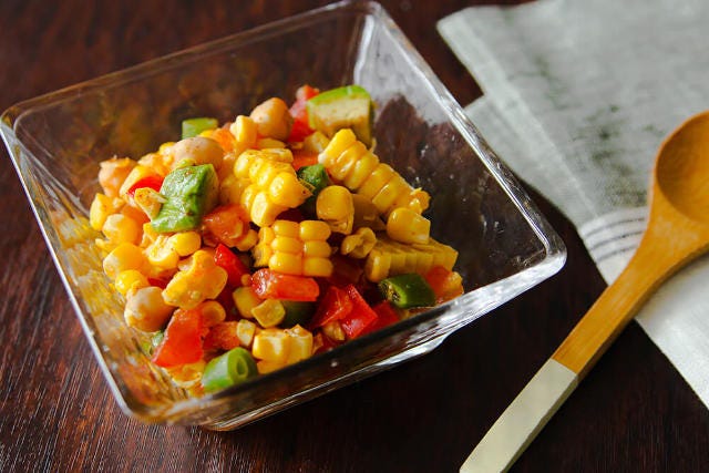 2.夏野菜たっぷり! 甘酸っぱさがクセになる「トウモロコシと夏野菜のカラフルマリネ」