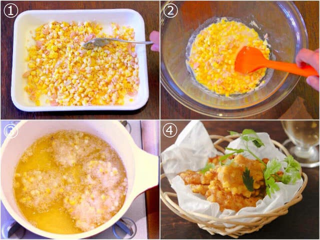 1.塩気と甘みのバランスが抜群! サクサク食感が楽しい「トウモロコシとツナのフリット」