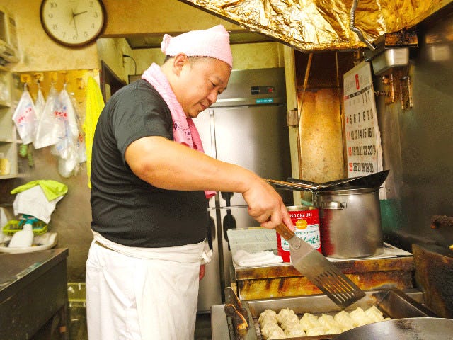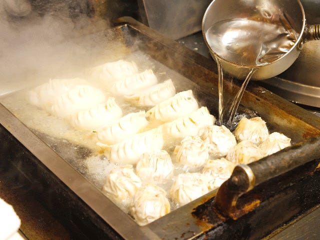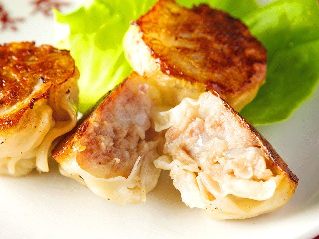 うーん、わからん、とても深い! って、それもそのはず。「煎人餃子」は、豚挽き肉、ハクサイ、ニラ、シイタケなど定番の具材から、エノキ、香菜、卵、春雨、ナス、インゲンなど、なんと全部で16種類の具材を使っているんですって。いや、16種類は、わかるわけないでしょー(笑)